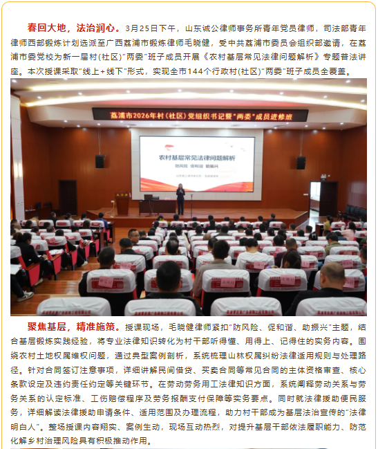 诚公动态|司法部青年律师西部锻炼计划锻炼律师毛晓健为全市144个村(社区)新一届“两委”班子成员做专