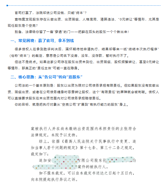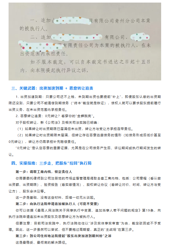 诚公律谈|公司作为债务人案件执行未果后,股东出资加速到期责任实操