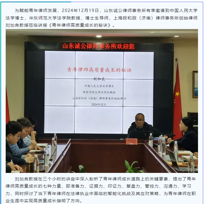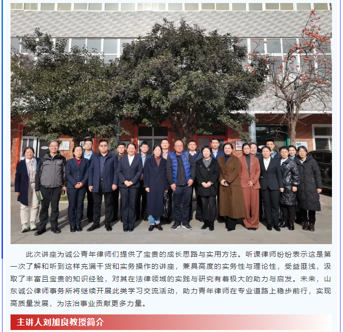 诚公动态|华东师范大学教授、中国人民大学法学博士刘加良教授受邀至山东诚公律师事务所讲授青年律师高质量