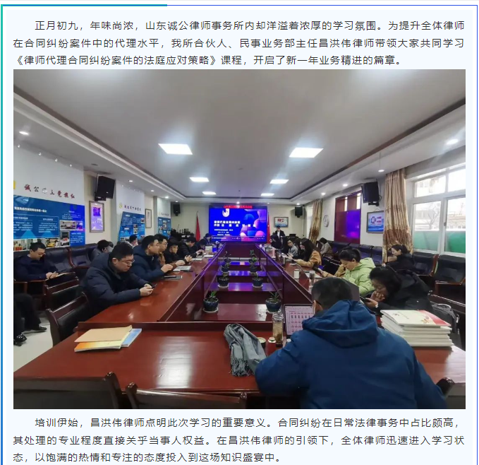 诚公动态|山东诚公律师事务所开展合同纠纷案件代理应对策略专项培训