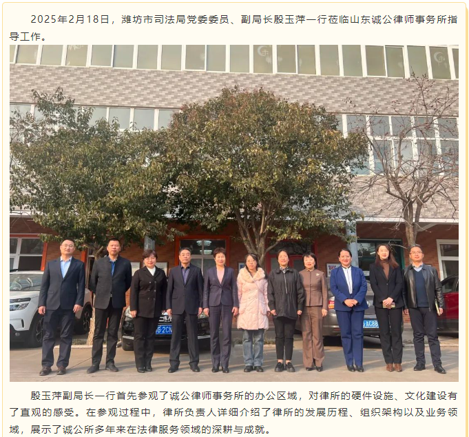 诚公动态|潍坊市司法局党委委员、副局长殷玉萍一行莅临我所指导工作